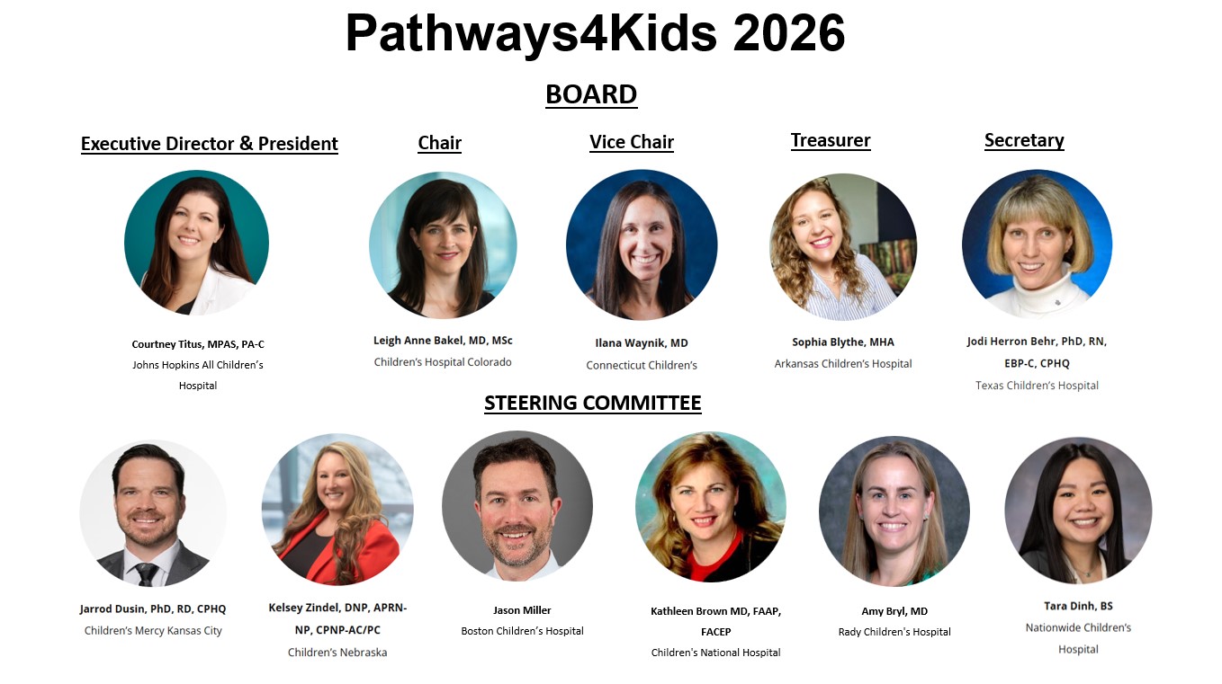 We are a nonprofit made up of hundreds of pediatric healthcare professionals from over 50 children’s hospitals across the nation and Canada who develop and implement evidence-based clinical pathways.